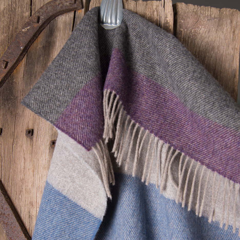 MERINO LAMBSWOOL THROW, CHARCOAL, BLUE & MUSTARD